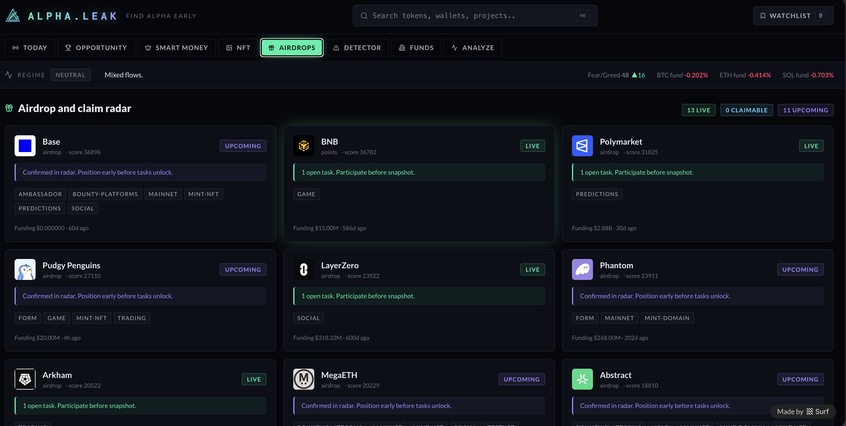↗ Read full postAlpha Leak is a real-time crypto intelligence platform designed to cut through noise and surface actual opportunities. It tracks smart money movements, highlights only active airdrops and claimable rewards and analyzes live signals across the market. Instead of overwhelming users with raw data, it focuses on what matters right now, helping you identify trends early and act before the crowd. Built for speed, clarity and real decision-making in fast-moving markets.