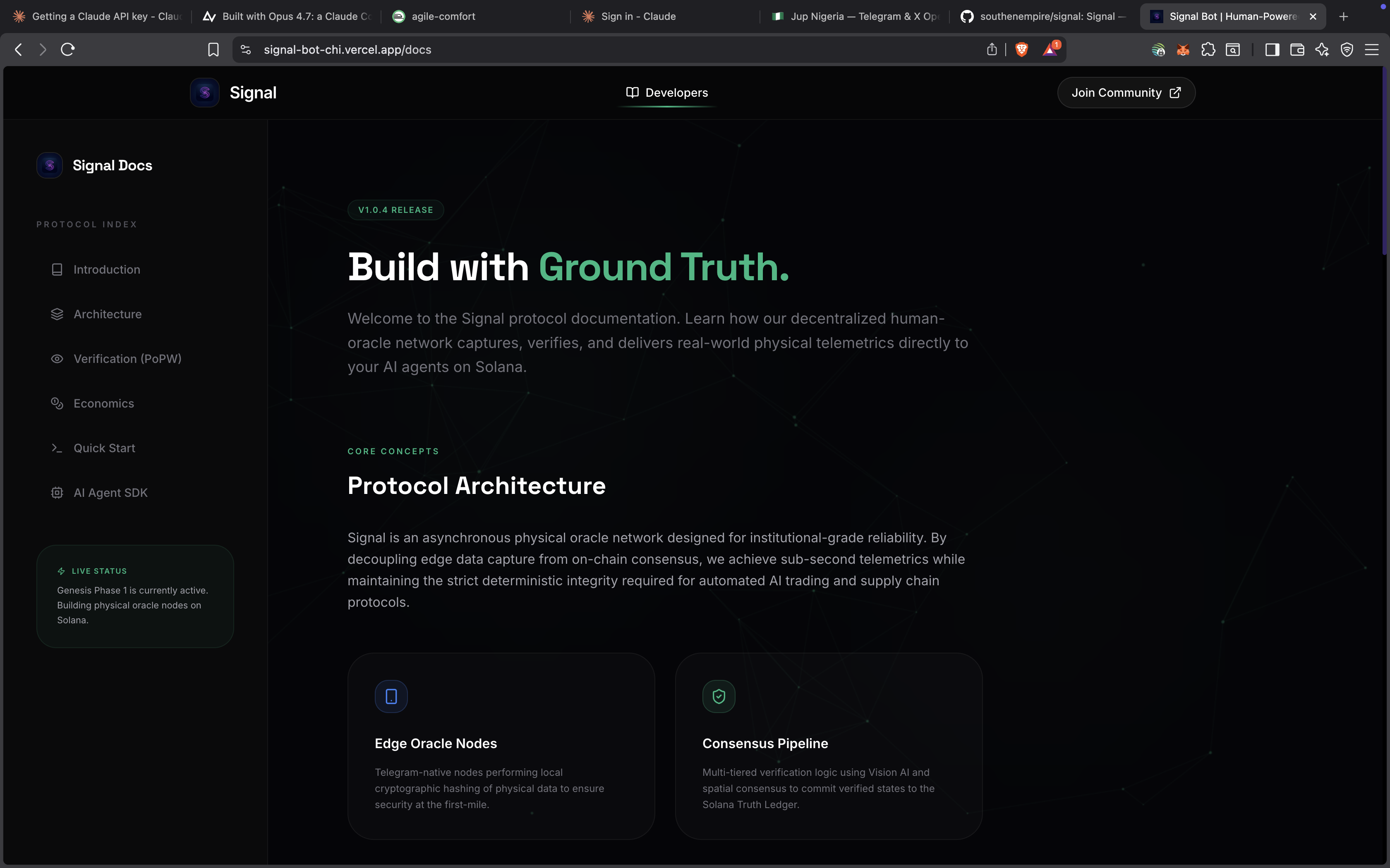 ↗ Read full postSmart contracts are blind to the physical world. Signal Protocol bridges this gap by creating a decentralized Human Oracle network on Solana.