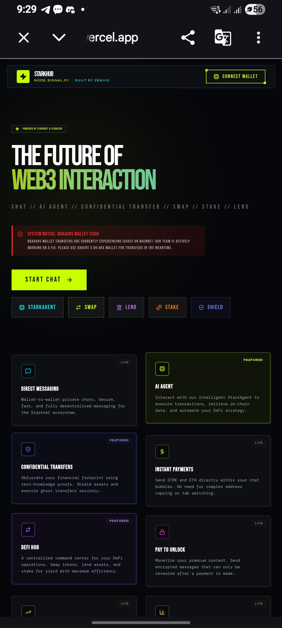 • wallet to wallet messaging • voice + images • send / request STRK & ETH inside chat